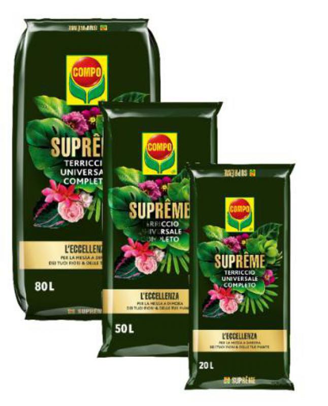 Dopo il grande successo del 2025, la gamma Suprême si amplia con nuove taglie di terriccio da 80, 50 e 20 litri, che si aggiungono al formato classico da 25 litri con maniglia. Il terriccio Suprême è formulato con Aqua Depot per garantire una riserva d’acqua ottimale, Turbo Radici come attivatore radicale per uno sviluppo sano e vigoroso, concime a lenta cessione per un nutrimento duraturo, torba di alta qualità e pomice che assicurano leggerezza e aerazione ideale per le radici. La gamma comprende anche il concime liquido universale completo e granulare a lenta cessione, disponibile in cartone. Per valorizzare la gamma Suprême, è possibile creare un’isola espositiva dedicata da posizionare nell’area promozionale del punto vendita dove il design elegante e sostenibile della gamma può avere la giusta rilevanza e valorizzazione.