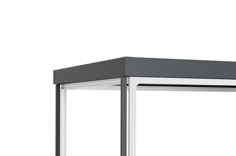 Il tetto lounge è proposto in sei varianti dimensionali, ottenute combinando due larghezze e tre profondità, e in tre finiture cromatiche – grigio antracite, alluminio grigio e antracite metallizzato – per garantire la miglior integrazione con gli spazi e le architetture.
